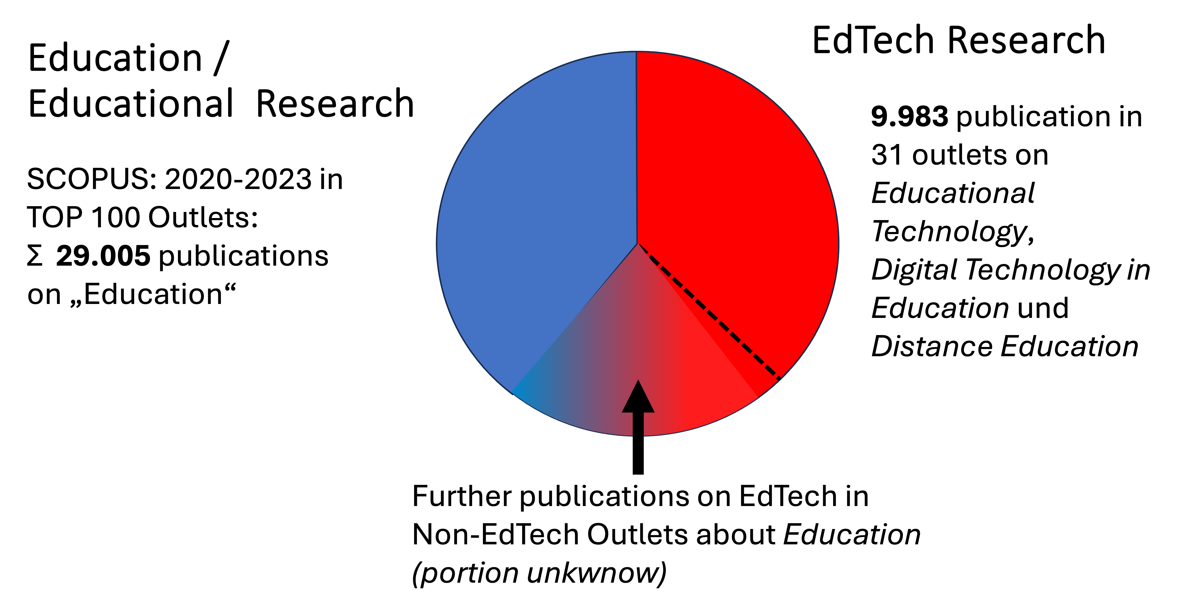 A recent analysis of publications in the 100 most-cited education journals from 2020 to 2023 revealed a pronounced focus on educational technology (EdTech) within international scholarship. Kerres (2025) found that approximately two-thirds of the 29,000 articles published in journals categorized under “Education” appeared in EdTech-specific outlets. Furthermore, a significant yet unquantified proportion of articles in non-EdTech journals also addressed digital technologies in learning contexts. These findings suggest that EdTech dominates global educational research agendas, reflecting its centrality to contemporary scholarly discourse (see Appendix).