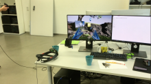 Auch ein Besuch im AR/VR-Lab durfte natürlich nicht fehlen. Dort bestand die Möglichkeit, eigens entwickelte virtuelle Welten und Simulationen zu besuchen, Interaktionsmöglichkeiten zu testen und sich über weitere Projektvorhaben auszutauschen.