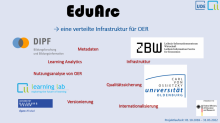 Zum Abschluss des Kollaborationsprojekts EduArc hat am 30.03. ein Online-Abschlusstreffen, organisiert vom DIPF, stattgefunden. Neben spannenden Beiträgen der anderen Projektpartnern, präsentierten Dr. Daniel Otto und Sophia Donat vom Learning Lab hierbei die zentralen Ergebnisse der Arbeitspakete des Learning Labs und warfen einen Blick auf die Zukunft von OER in der Hochschullehre.