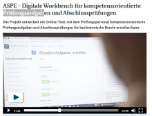 Ein rund 4-minütiger Film gibt einen Einblick in das Projekt ASPE, in welchem u.a. eine onlinebasierte, digitale Workbench entwickelt wurde. Diese unterstützt (ehrenamtliche) Prüfungsaufgabenersteller/ -innen der Ausbildungsberufe Industriekaufmann/ -frau und Kaufmann/ -frau für Spedition und Logistikdienstleistung bei der standardisierten Erstellung und Auswahl von Prüfungsaufgaben und bei der Zusammenstellung von Aufgabensets für Prüfungen.