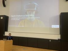 Zum Auftakt am Montag leitete Miriam Mulders zusammen mit Raphael Zender und Heinrich Söbke den 8. Workshop XR-Learning. In diesem Rahmen stellte sie den Beitrag „Lernen in Virtual Reality: Eine Analyse der kognitiven Belastung unter Berücksichtigung der Redundanzhypothese“ vor, der auf der Bachelorarbeit von Lilly Kaninski basiert und gemeinsam mit Lara Rahner und David Wiesche ausgearbeitet wurde.