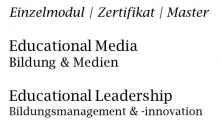 Bis zum 31. Juli können Sie sich noch anmelden für die Kurse in den Studienprogrammen "Educational Media" und "Educational Leadership" am Learning Lab: Sie können einen einzelnen Weiterbildungskurs belegen oder - auch danach aufbauend - das Zertifikats- oder Masterprogramm. Mehr Informationen finden Sie hier.